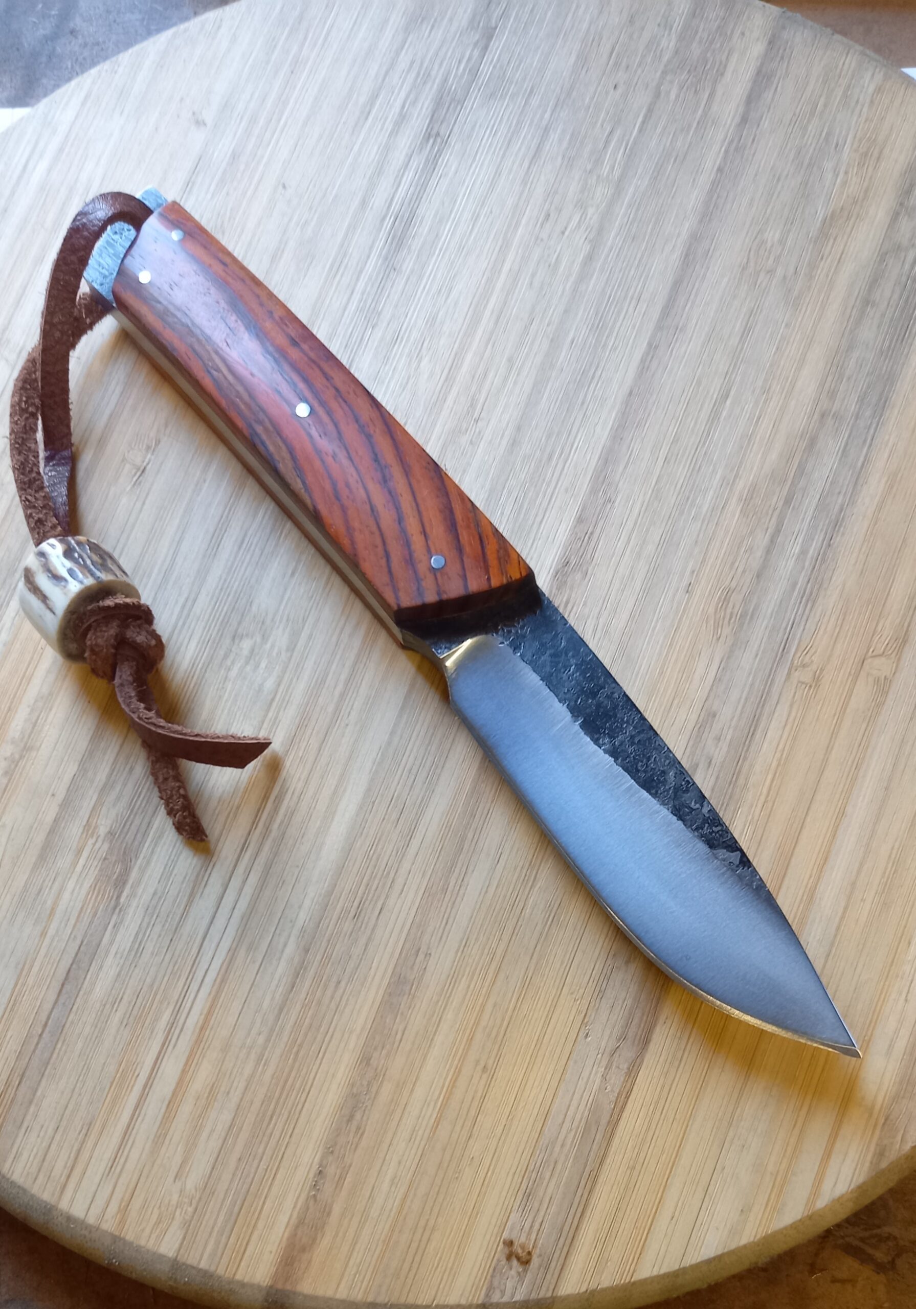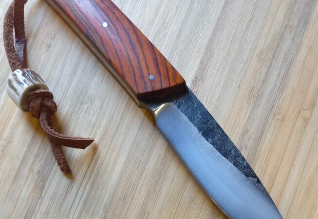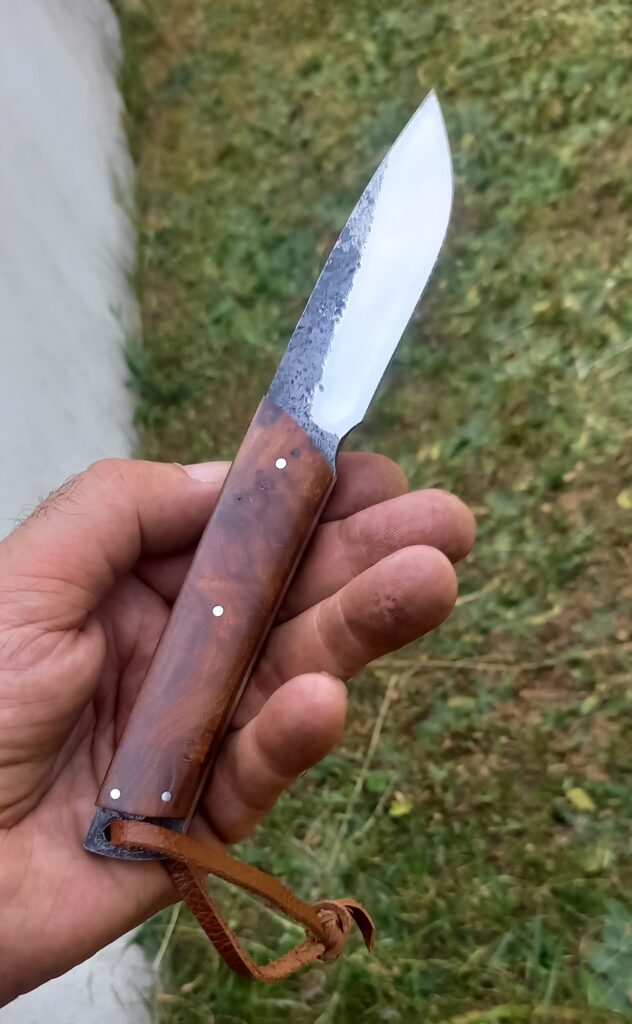 Forgé dans un barreau d xc 70, un bon bushcraft qui ne vous laissera jamais tomber. 265 euros hfdp avec étui cuir.