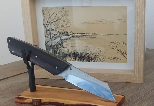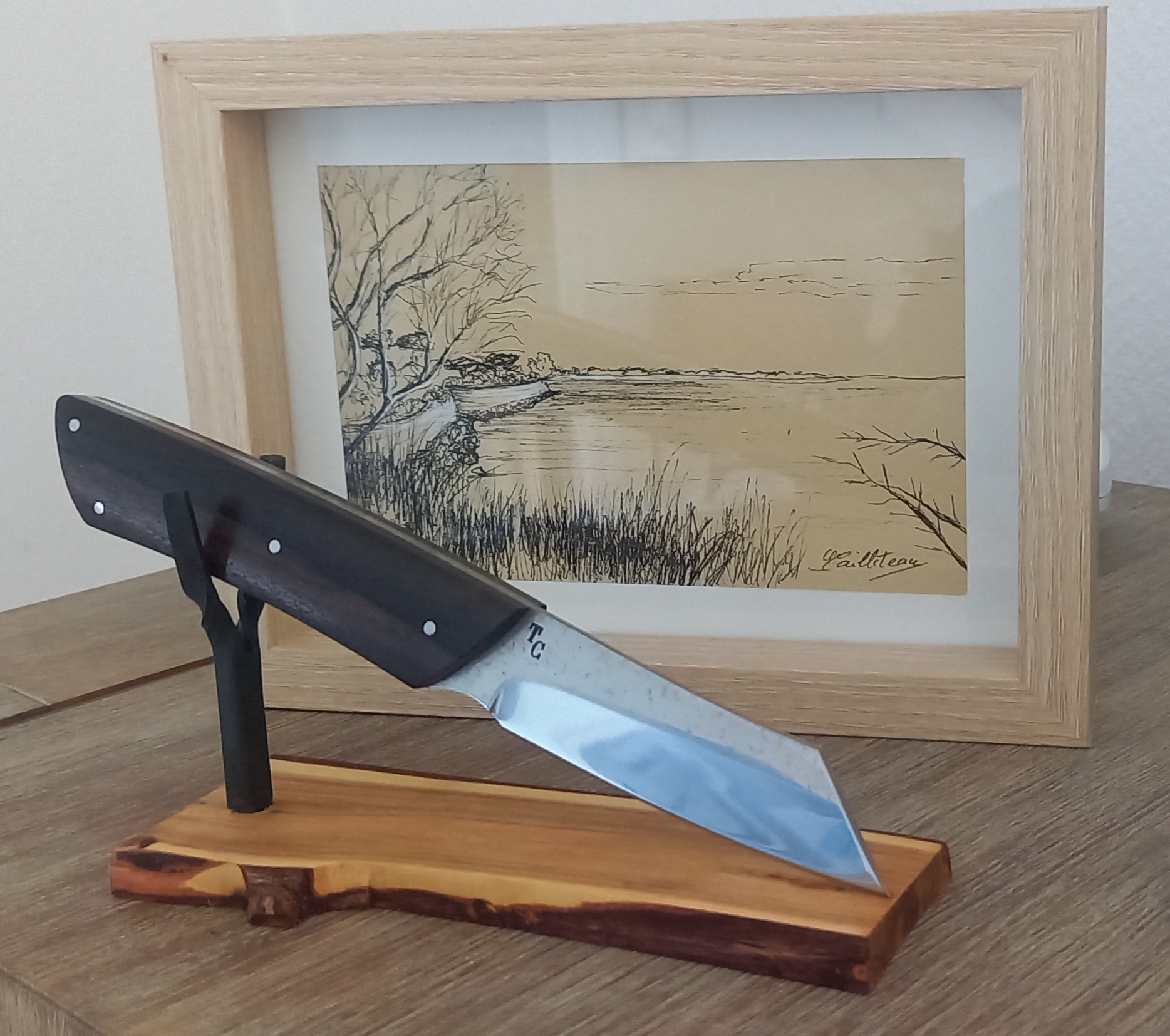 lame inox ou carbone ,un couteau à tout faire en cuisine. de 155 à 165 euros hfdp selon bois et acier choisi.